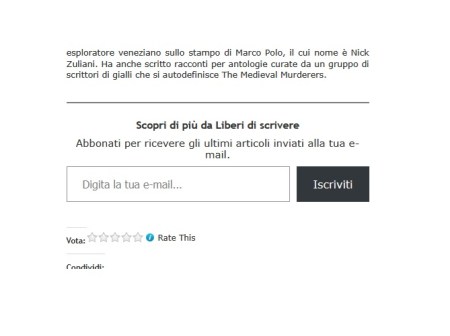Tra i tanti modi per sostenere il blog da oggi ce ne è uno nuovo: iscriviti alla Newsletter. Come fare? E’ facile, in calce ad ogni articolo c’è questo form: