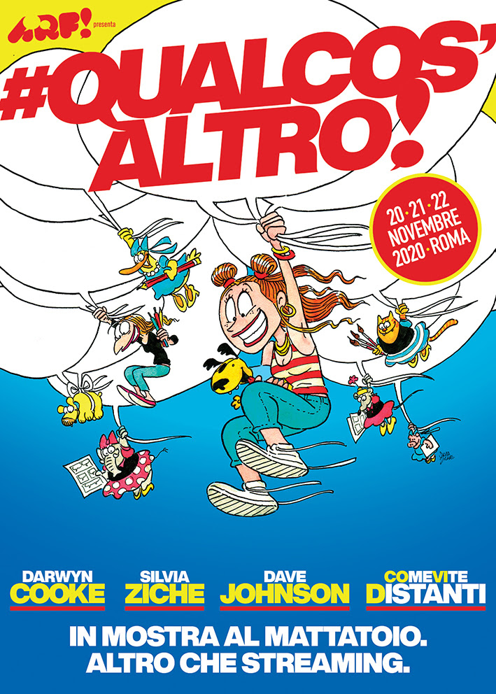 Dopo l’annullamento di ARF! il Festival del Fumetto di Roma – a causa dell’emergenza Coronavirus – rimandando la sesta edizione a maggio 2021, gli organizzatori (definiti da sempre ARFers) tornano al Mattatoio, il Museo d’arte contemporanea di Testaccio, per presentare da venerdì 20 novembre a domenica 22 QUALCOS’ALTRO, un intero weekend di mostre dedicate al fumetto, concepite come esperienza totalizzante e immersiva.
